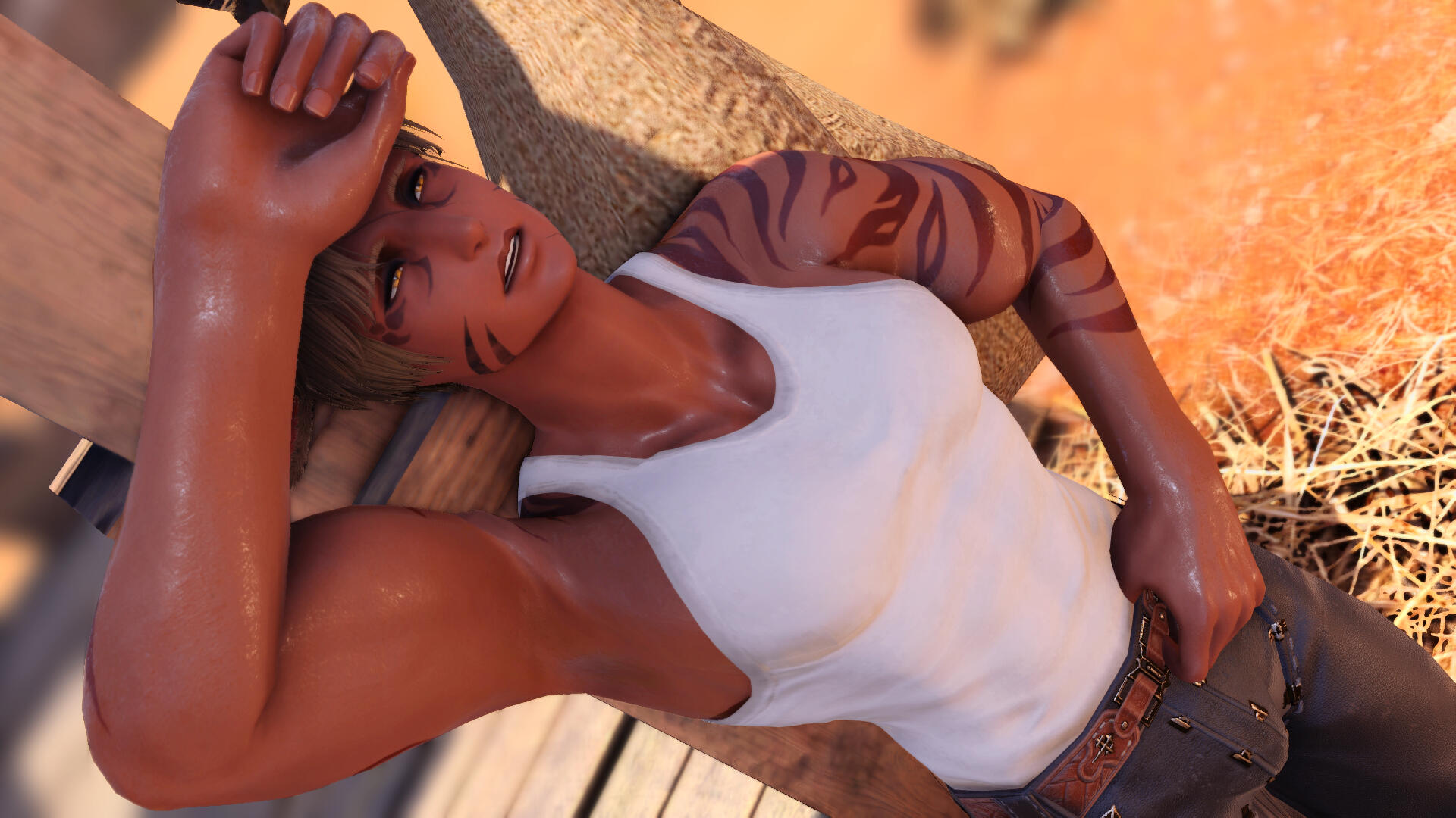 A native of the forests of the Skatay Range, Zevir grew up as the rest of his tribe did--in the village proper. All the children were raised together--all the women his mothers while his "father" was someone far away dedicated to protecting their home. It wasn't a sad thing--just the way that it was. When he came of age at just 16 years old, Zevir and his brothers were sent to the ward the woods as all Veena men are. There he trained--honing the art of a Viper under the boughs and canopies he called home.Zevir only faintly recalls his first annual trip to the next village. Woken in the middle of the night. His brothers stirring around him with hushed, nervous voices. The eldest of the Warders leaping from bed in excitement. The eldest of the Wood Warders told them it was time. They were being called back to the village to attend the women. Zevir knew his duty to his tribe and he was all-too-happy to fulfill it--if only because carnal pleasure was as much of a boon for him as it was the women of the village. This continued for 5 years. Protect the village. Cloister. Wait. And then return a week a year. The same again and again.When monotony wore him down, impatience and impulsiveness drove him out of the woods... but greed kept him out. Truly alone in the wider world, a young Zevir quickly learned he could take that which was kept from him by the role he was born into. Yanxia was ripe, thieving--easy, and a pretty face and dexterous hands made for quick work.Maybe things would've turned out different. Maybe he'd have eventually found honest work. Maybe Zevir would have found a cause that meant more than himself--that overrode his thirst for more. Instead, he met Ren... and Ren promised him everything.Ren was a prickly man--an Elezen with sea blue eyes; short, black hair ; and an even shorter temper. He was always judging. Assessing. He soured when the work did. Barked at and beat his men for not following orders. Told them they were worthless if they couldn't do what they were told. Would go on benders for days between jobs that left him missing until he'd show up hung-over. Even the rarest show of vulnerability from any of their band of veritable brothers was one Ren dismissed as weakness. Still, Zevir was good at what he did and the payday was all but waiting for him to seize it.Zevir needed little convincing. Coin opened doors, after all. So he agreed. The job was just a job, but the bond that formed between Zevir and his new mentor was unshakable. Rooted in shared lust for the best life had to offer, Zevir quickly became more than a business associate to the man who recruited him. Job after job until it wasn't work anymore. It was dependance. Ren kept him safe. Fed him. Clothed him. Taught him to channel his aether. Made him deadlier. More efficient. Showered him with praise for work well-done... Even if Zevir wasn't immune to the abuse the rest of their band endured at his hands.Ten years passed.Their romance--if one could call it that--burned bright and hot. Midnight trysts and quiet sighs weren't something the two of them shared. With Ren, everything had an edge. Eventually, Zevir found that preferable--even if it meant their passion came to a boiling point. They'd trade blows, the flame would blow out in the hurricane... and Ren would chase him with honeyed words to woo him back with touch and mouthed affection.All the while, they worked. Their band eventually became known for swift and effective saboteur operations. The Doman Resistance hired them often. Ren was the strategist. Zevir was the dog he sicced on a problem. It was a deadly pairing--Ren guiding the guerrillas with maps and schematics and Zevir planting bombs and ripping through enemy ranks with blade and fire.Then, a big job. Their services--however ilicit--were needed to push back Garlemald's invading forces. Coin moved mountains and--so too--did it move Ren and Zevir.The plan was simple. Zevir leapt at the opportunity, but Ren hesitated--even at the promise of a hefty sack of gil. The intel was bad, he insisted. Couldn't spend the gil if they were dead. Zevir argued it was a once-in-a-lifetime chance for a payday that could set them up for years to come. If Ren was too stupid to see that then the Veena would take his chances on his own.So he stole himself away. Followed the plan. When he snuck back out of that Imperial encampment, Zevir thought to give the old man some grief. He'd thank him when the gil was tangible. Zevir hovered a thumb above the detonator, tasting the breeze one last time before it filled with smoke and ash.Pressing it did... nothing. And then there was a rifle at his neck.The intel was bad. Worse, it was a trap. The Imperials set the bait for those Yanxian rebels that hired Ren's blades. Even Ren himself hadn't anticipated the true nature of what was waiting for them, so when he watched Zevir's capture unfold from afar the Elezen finally ignored his better judgement and rushed in.As Ren rushed the camp, he met Zevir and his captors with blade and bared teeth. He fought fiercely--freeing Zevir and commanding him to fight with him for their escape. It'd all gone to shit, but that didn't mean the day was done for. The Veena took up two Imperal shortswords and met Ren at his back. Surrounded and out numbered--even with the men Ren had slain at their feet--they prepared for the fight of their lives.For all the bad intel, the Imperials hadn't actually accounted for one of the rebels making it inside. The detonator malfunctioning was only a happy accident for them and a misfortune for Zevir and Ren.But it was only a short. Only one silly lapse in the fickle device. A jostle in the scuffle knocked something back into place. A fireball erupted from the rear of the camp. The shockwave flattened tents and sent men flying 15 fulms or more to the ground. Magitek armor chain-reacted. As Zevir turned to look over his shoulder, it was already too late. He was knocked away from a blast and fell unconscious in the