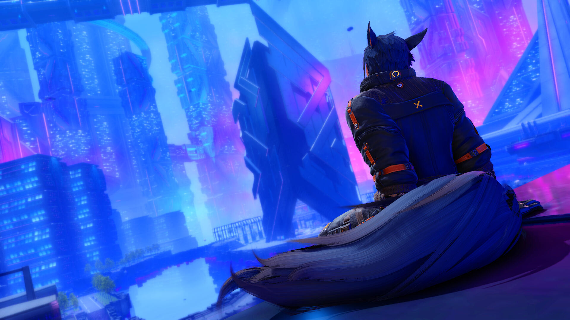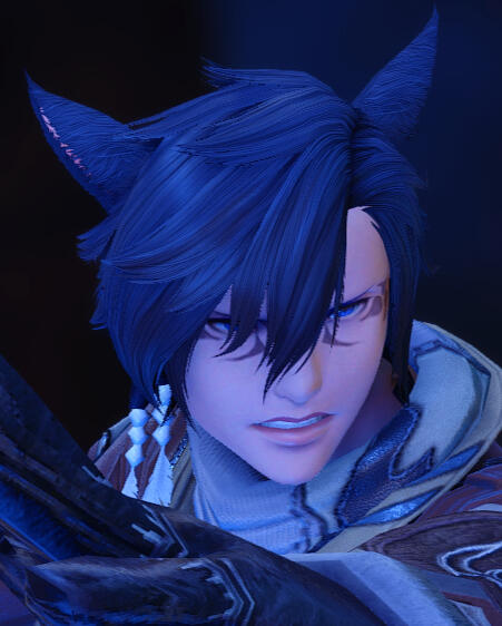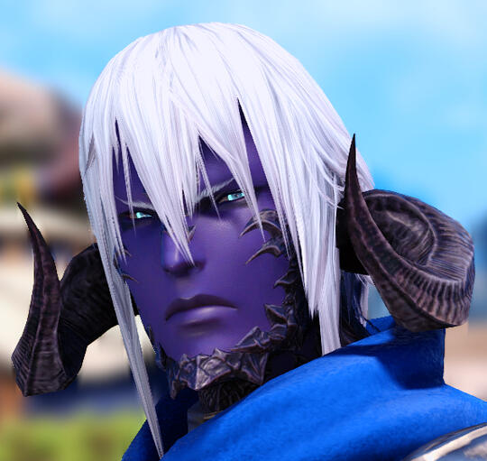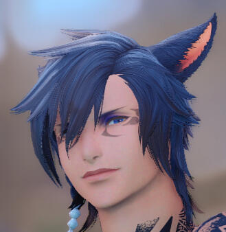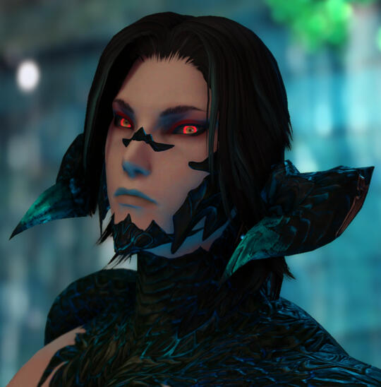 HEIGHT 5’6” HAIR Short, Bangs, Navy Blue EYES Purple Iris, Pink Limbal Rings RACE/ETHNICITY Au Ra (Xaela) NATIONALITY Ishgardian PIERCINGS None PHYSICAL DISABILITIES & CHRONIC AILMENTS Aetheric Imbalance (Umbral)